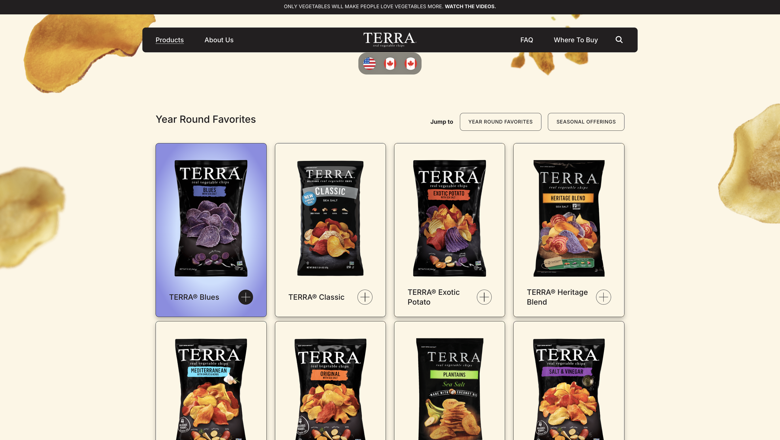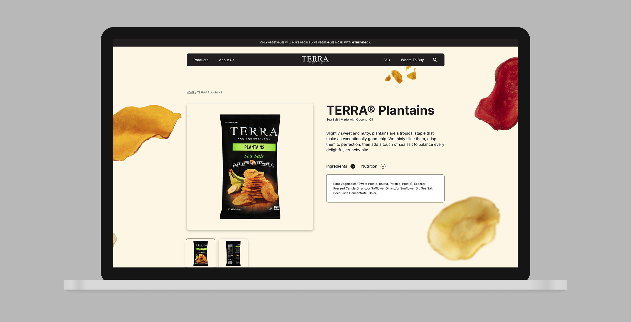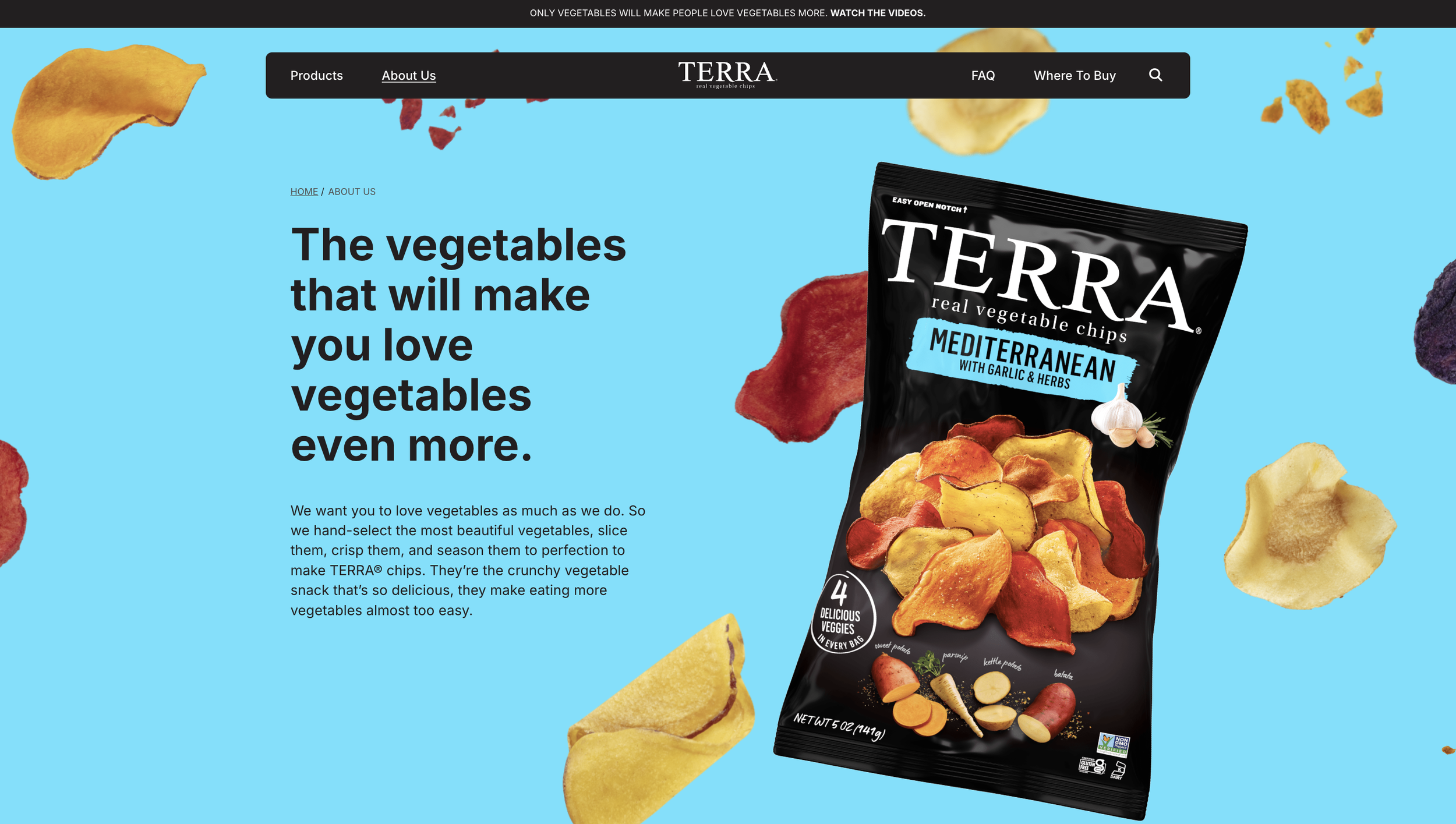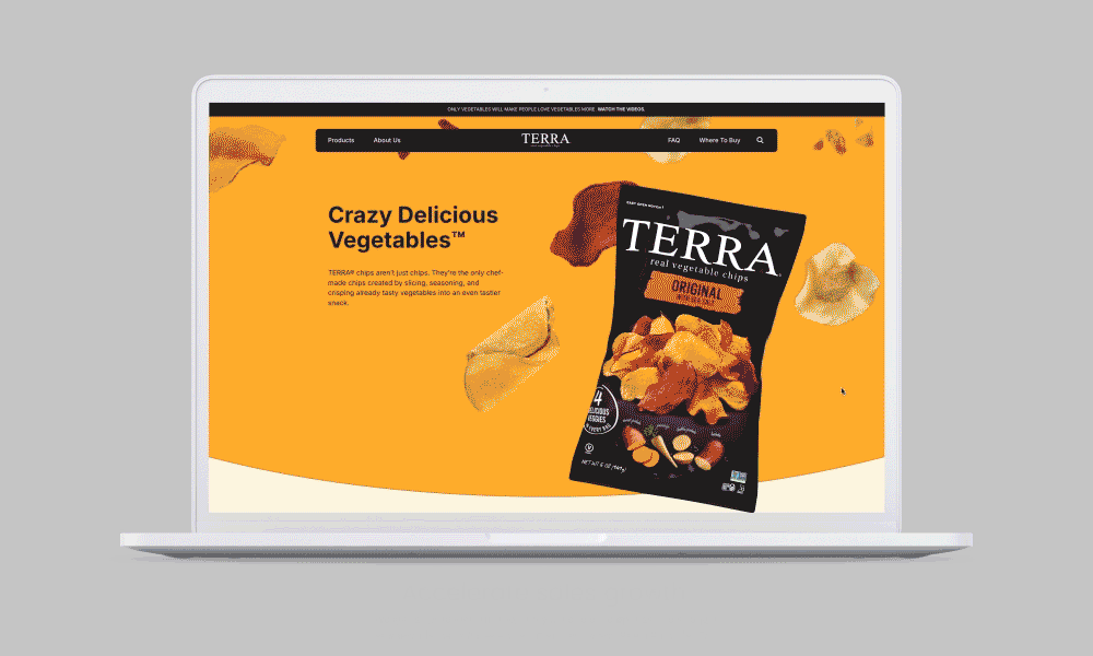 We partnered with Terra Chips to redesign the front end of their marketing website, aligning the site with the refreshed look of the packaging while highlighting their vegetables as the star. The result is a digital experience that feels recognizable, modern, and built to scale as the brand continues to grow.